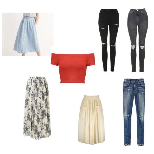 if you want to give yourself a bigger visual picture of the outfit possibilities your new skirt could create, try adding a few pairs of shoes to the web too. or, if it’s a colder weather outfit, maybe add a couple of sweaters or jackets to the web that would work with each top.