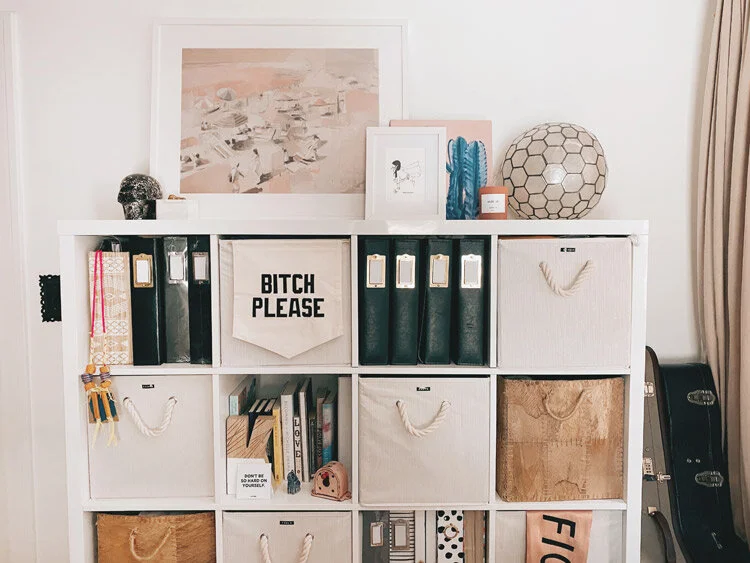 This Ikea bookshelf is a total workhorse, and the bins really help me hide a bunch of unsightly stuff that I desperately need to purge.